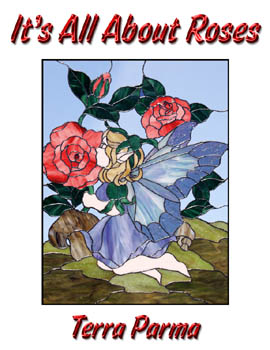 It's All About Roses - Terra Parma Terra's love for roses in all styles and forms is demonstrated in her new full-sized pattern book, "It's All About Roses". Featured on the front cover is a delightful fairy taking time to enjoy the roses in her garden. Other designs include a beautiful basket of roses; looking at a blooming rose up close, showing petals fading from dark to light tones; a Victorian rose panel with several options for the use of bevels and borders; and a lattice oval bordered with four roses. For added interest, Terra presents an interesting quilt block, challenging the user to use alternate shades of color to form the roses and background squares. Rounding out the theme is a matching vanity set, which includes a tray, small jewelry box and a dresser lamp, all adorned with (you guessed it)... roses! Check out the panels! |