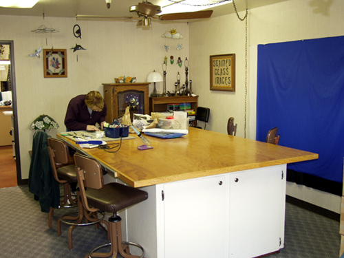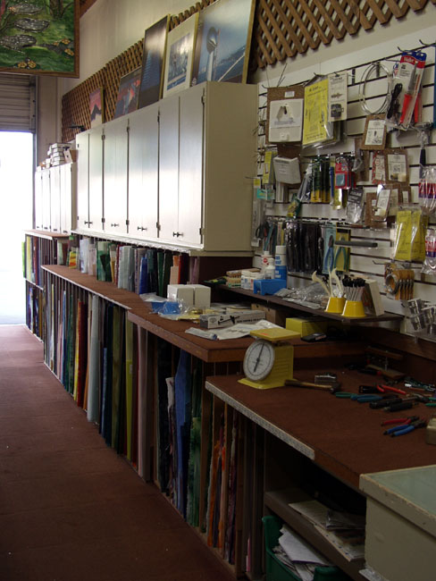 The shop has all the amenities to feed your habit - glass, supplies, books. And full work facilities to support the classes - classroom, irons, grinders, work stations.